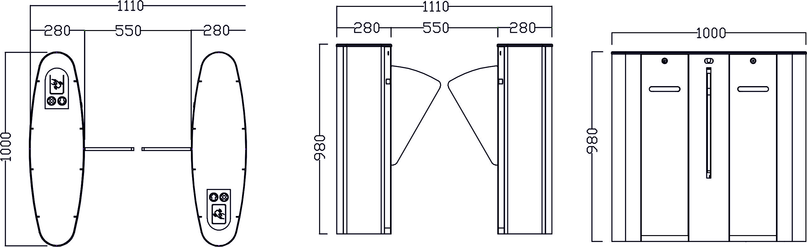 Turnike Kolları Hariç Ölçüler: 1000 mm x 280 mm x 980 mm